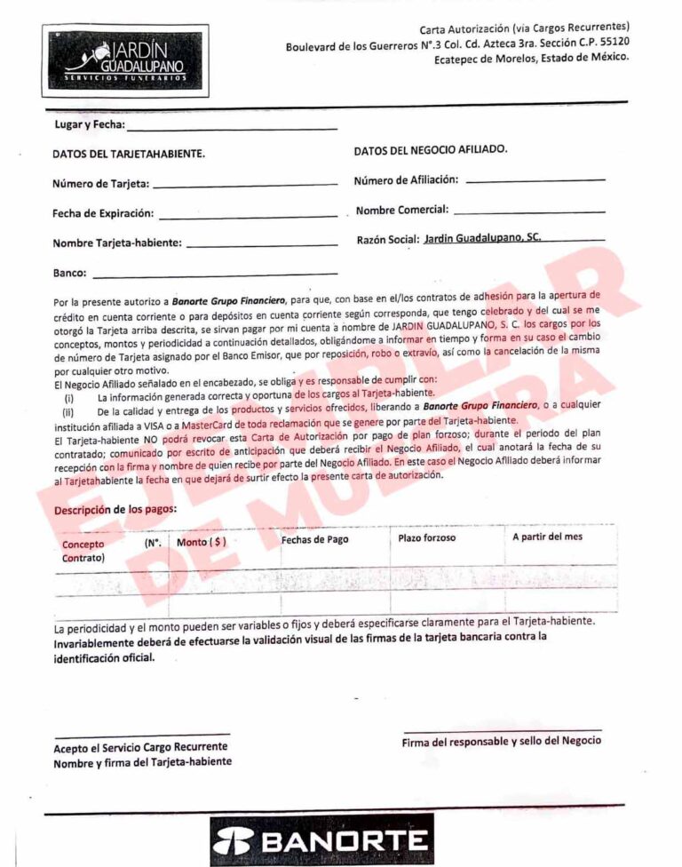 FORMATO DE AUTORIZACIÓN PARA DOMICILIAR TARJETA